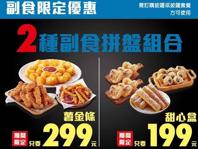 2,外帶任選2個極致系列大披薩只要 $755,再送100元折價券(數量有限,送完為止)