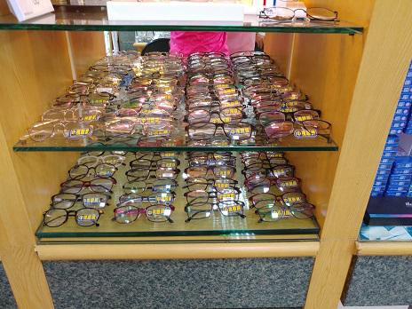 很多種的遠視、近視眼鏡、墨鏡、隱形眼鏡等銷售