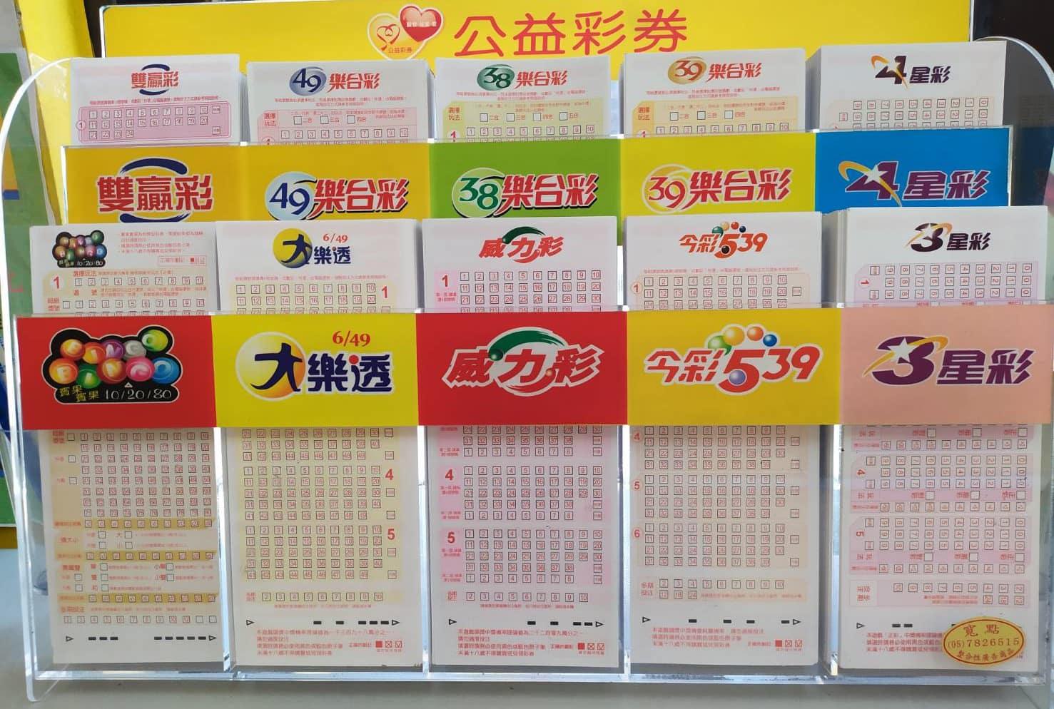 大樂透、威力彩、今彩539、樂合彩、雙贏彩、 3星彩、4星彩、賓果 等彩券