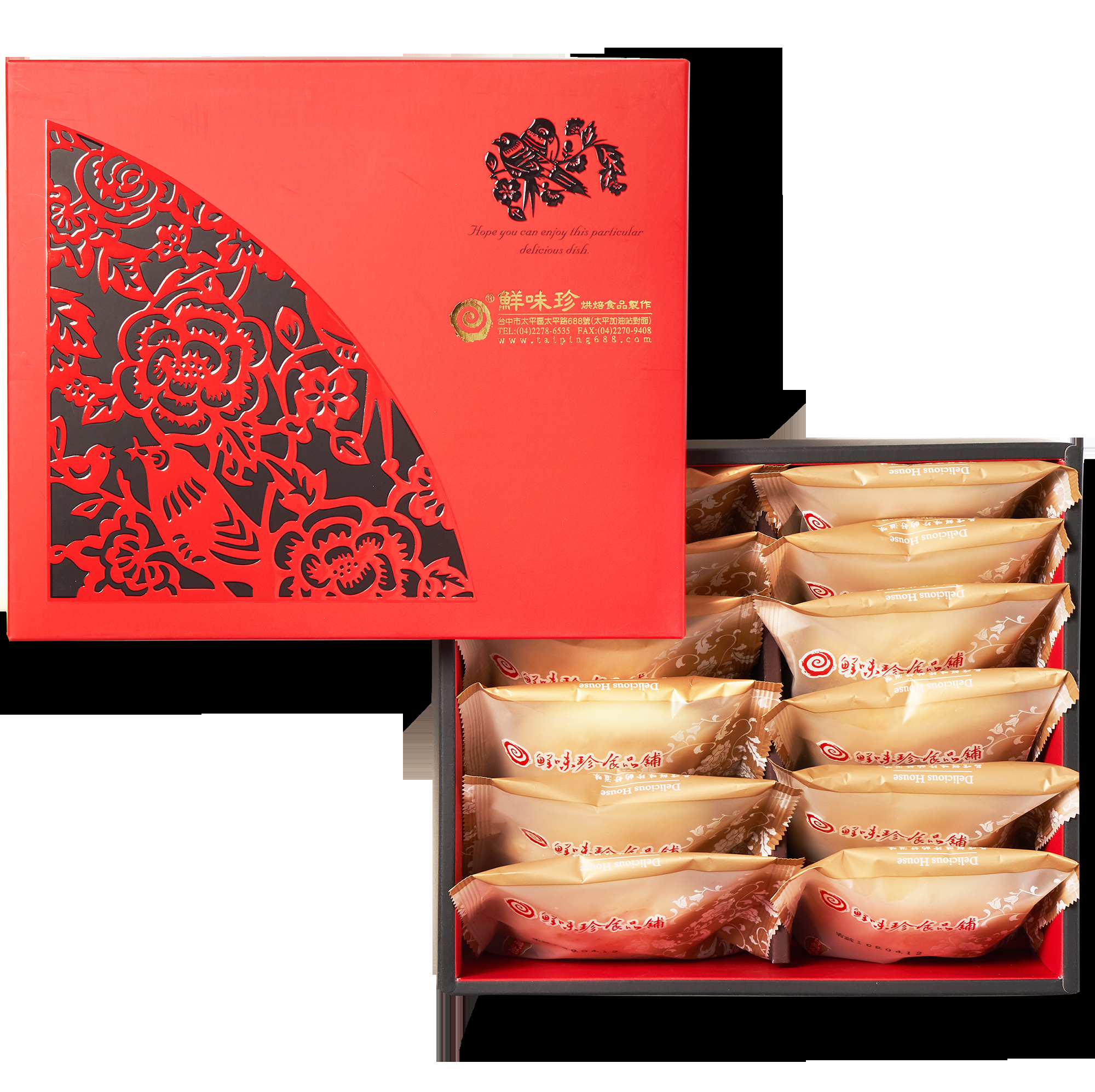 六十年來,鮮味珍傳承傳統美味 麵龜,壽桃和中秋禮盒為店內的口碑暢銷品 之前多以包子,饅頭,麵包為主 皆循古法製作把原有的技術基礎加以改良,不斷求新求變研發出多種高人氣與好口碑的商品,當初只是為討生活至台中習藝的創始人何欽,與夫人在當時的太平經營起糕餅的生意 一轉眼四十多年,做出了鄉里的好口碑,現在的鮮味珍已是第二代經營 大兒子何錦拓和小兒子何順益習得父親的一手好手藝和經營方式,也為開發新產品前往日本,法國,比利時等地進修. 從傳統出發,玩味糕點新創意 這就是大家熟知的鮮味珍商品介紹